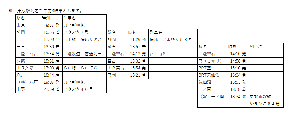 (ご紹介するのは東京8:30発以降です) - 日帰り・連続2日用で計画