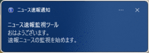 - インストールが終わると、自動的にソフトが起動します。ソフトウェア起動時に確認のためテストメッセージが表示されます。何かしらのニュースが入ってきたりすると通知が来ます。