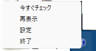 タスクトレイの「情報」アイコンを右クリックして「設定」をクリックすると、設定画面が表示されます。 - もし終了する場合はタスクトレイの「情報」アイコンを右クリックして「終了」をクリックすると終了します。